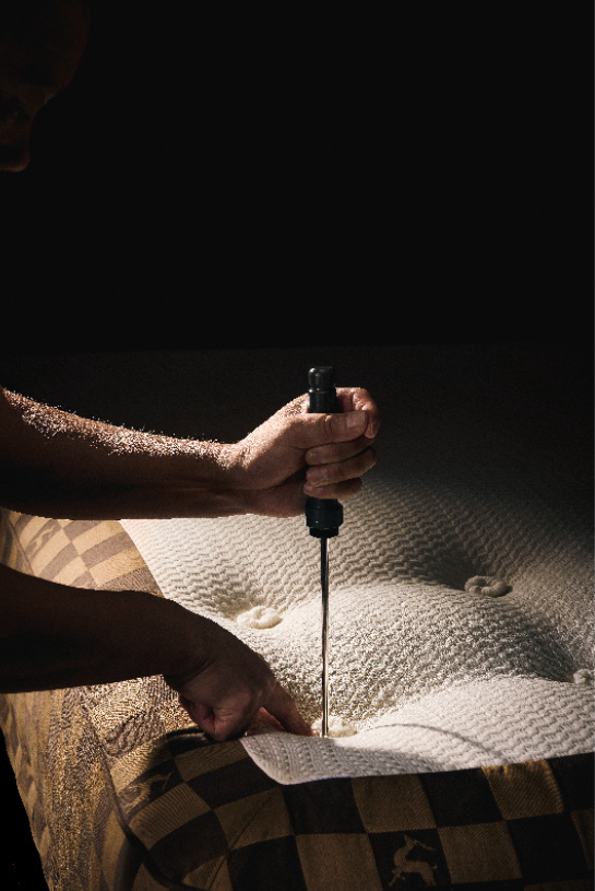 佰仕禄 ®顶奢手工床垫坚守初心,用传统手工缝制手工拉扣的方式一针一线的固定连接材料,极大的维护材料天然的特性,传统手工制作既是技术的返璞,更是情怀的回归。